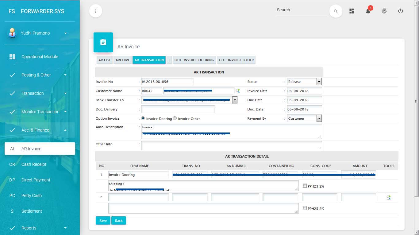 AR Invoice langsung dapat cetak Invoice by Job Order, AR Cash Reciept, Direct Payment, Petty Cash