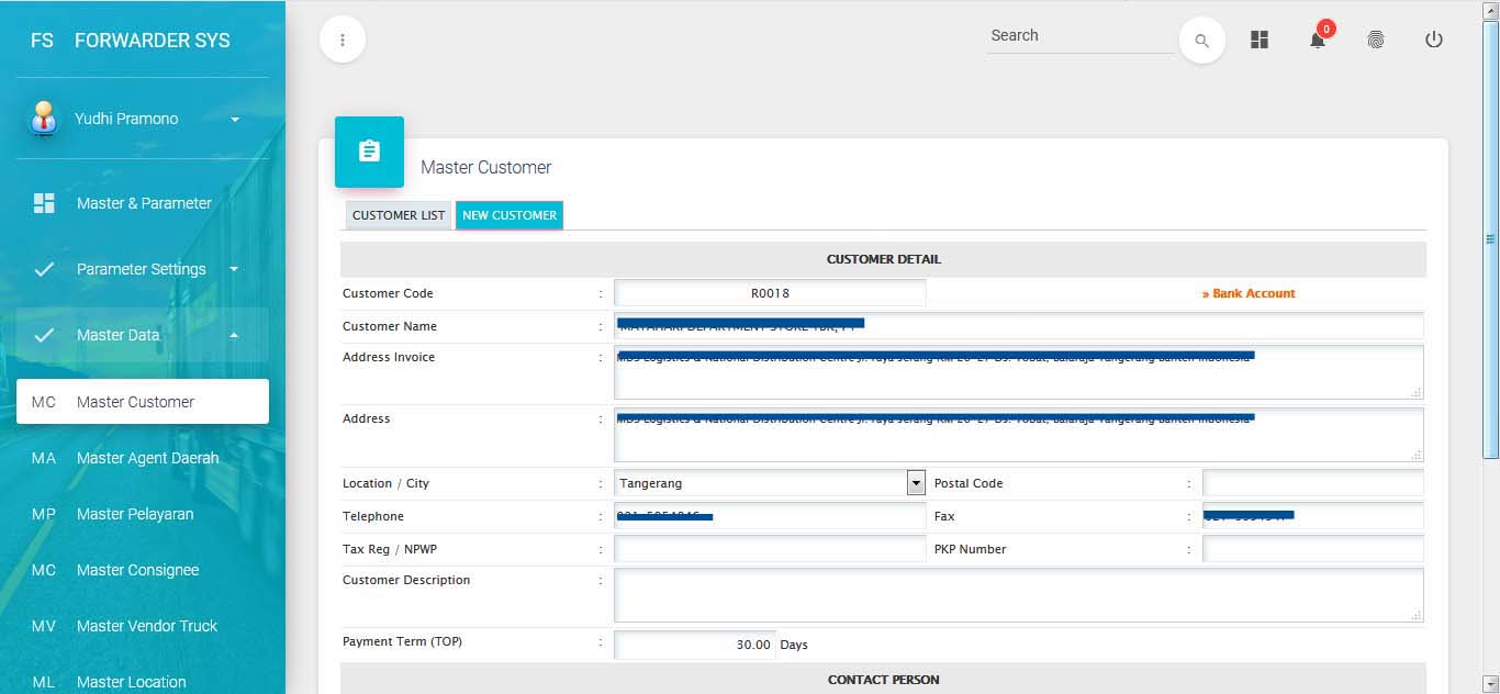 Customer, Consignee, Agent Daerah, Pelayaran, Vendor Trucking